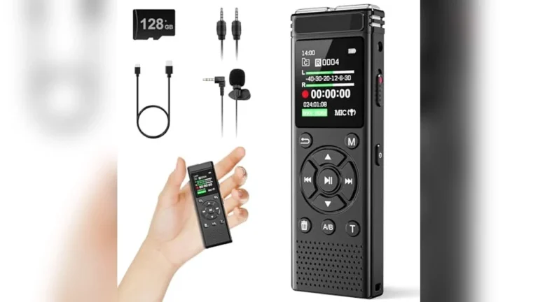 This voice recorder offers clear sound with its dual microphones and high-quality 3072Kbps recording. The 2-inch touchscreen is easy to use and makes navigation simple. Bluetooth connectivity helps to share recordings quickly without cables. Password protection keeps my files safe and private. A-B repeat function is very helpful for listening to important parts again. Large 128GB storage holds many lectures and meetings without worry. The device plays MP3 files, so I can listen to music too. Overall, it works well for school and work.